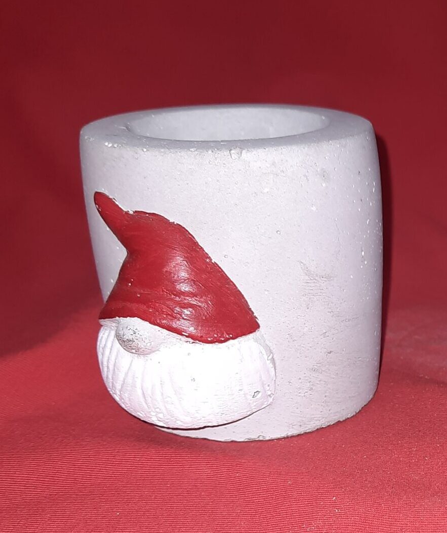 Dieser liebevoll gestaltete Kerzenhalter mit Wichtelkopf bringt stimmungsvolles Licht und winterlichen Charme in dein Zuhause. Handgegossen aus stabilem Beton überzeugt er durch seine schlichte Form und das detailreiche Wichtelmotiv – wahlweise naturbelassen oder mit farbig gestalteter Mütze.
